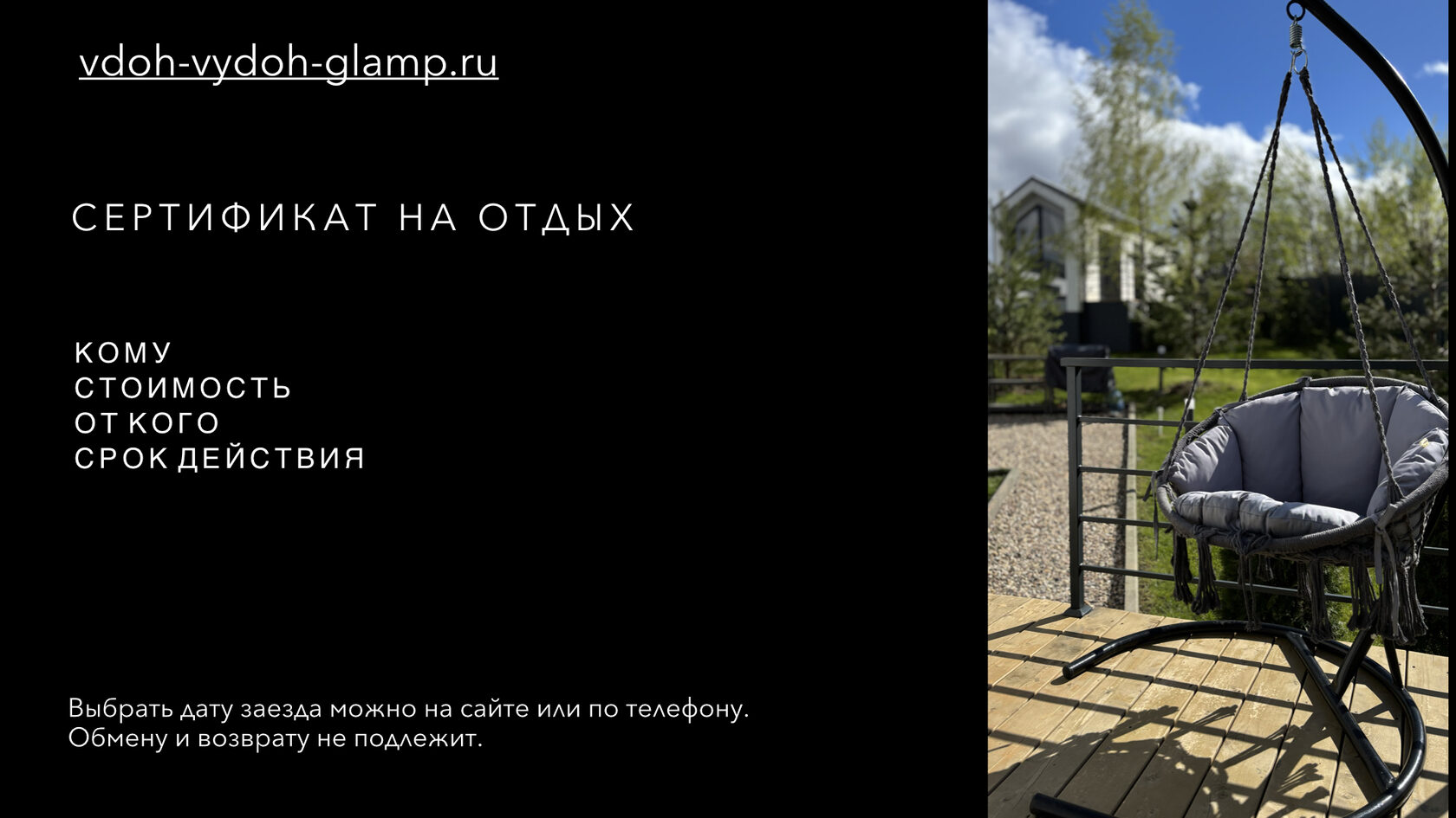 Дорогие друзья! Мы рады сообщить о запуске новой услуги — подарочного сертификата на проживание в мини-барнах «Вдох Выдох» в Подмосковье. Подарите своим близким уникальную возможность насладиться уютной атмосферой и комфортом в наших домах. Сертификат станет отличным подарком для тех, кто ценит отдых и заботу о себе. Подробнее о условиях приобретения и стоимости — в нашем канале и в личных сообщениях. Благодарим за доверие и ждем вас!